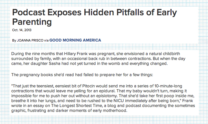 I tell ABC News why I started the Longest Shortest Time, and why I think new parents need it. Excerpt below. Click here to see the full story, and what Joyce thought of the episode we did about her daughter going naked for a month.