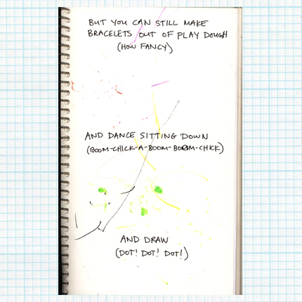 Then I remembered how just before she broke her leg she had a double ear infection, and when I took her to the doctor I told her, “We’re going to see Dr. Jawetz. You know Dr. Jawetz? Dr. Jawetz, the guy who goes boop on your nose? He’s gonna go boop. He’s gonna make you all better.”