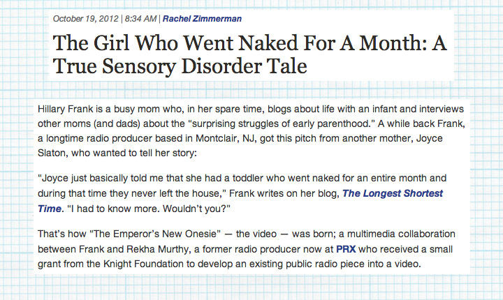 CommonHealth features our Emperor’s New Onesie video. Excerpt below. Read more about the making of this video in the full article.