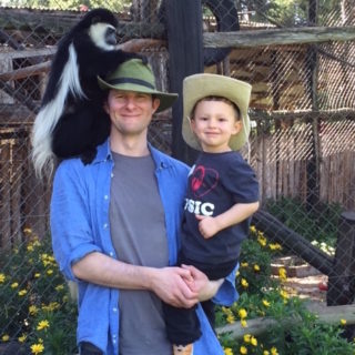 Gregory, Joseph and a monkey at Mount Kenya Wildlife Conservancy
