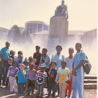 Joe and his pre-K class visiting a statue of Jomo Kenyatta, Kenya’s first President