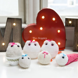 Eggy (far left) is the main friend in Matthew and Tracie’s imaginary world — but she has lots of companions