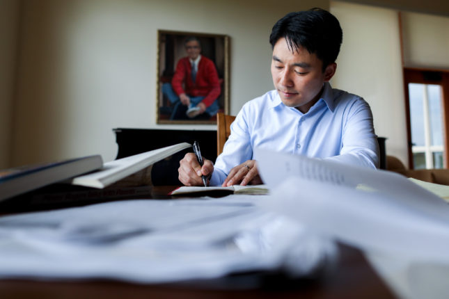 Junlei pouring through Fred’s old materials.