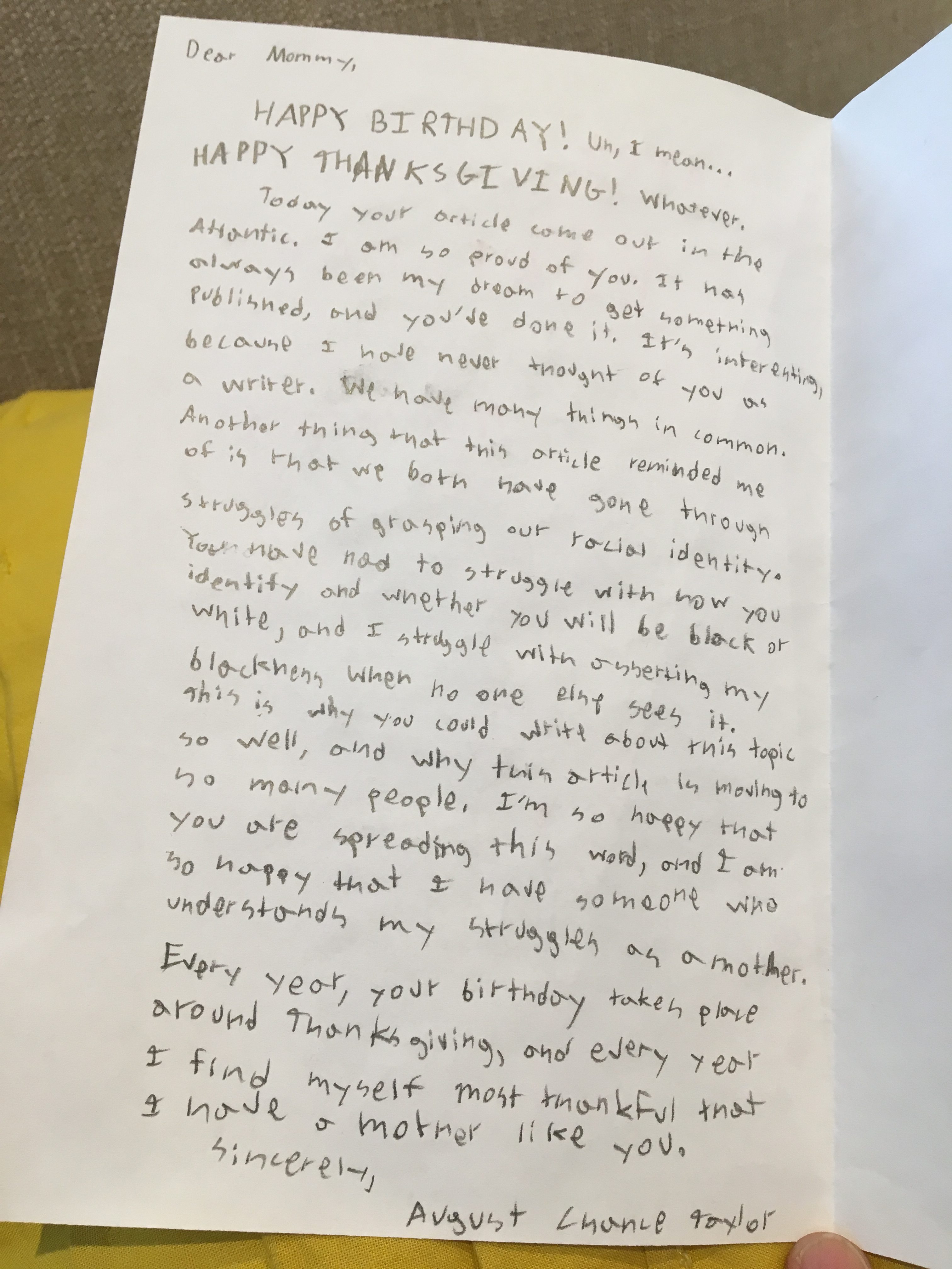 Myra Jones-Taylor is a Chief Policy Officer for an organization called Zero to Three. Her story for The Atlantic is called “Helping My Fair-Skinned Son Embrace His Blackness.”