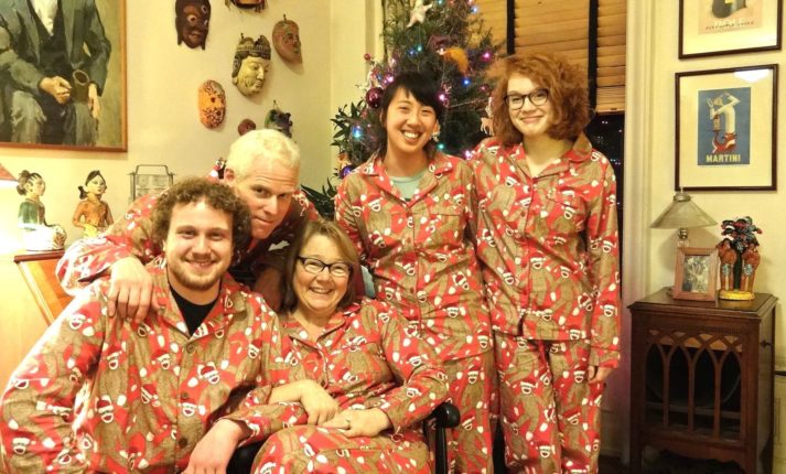 The Rosenthals + Jackie in their matching Christmas pajamas from a few years ago.